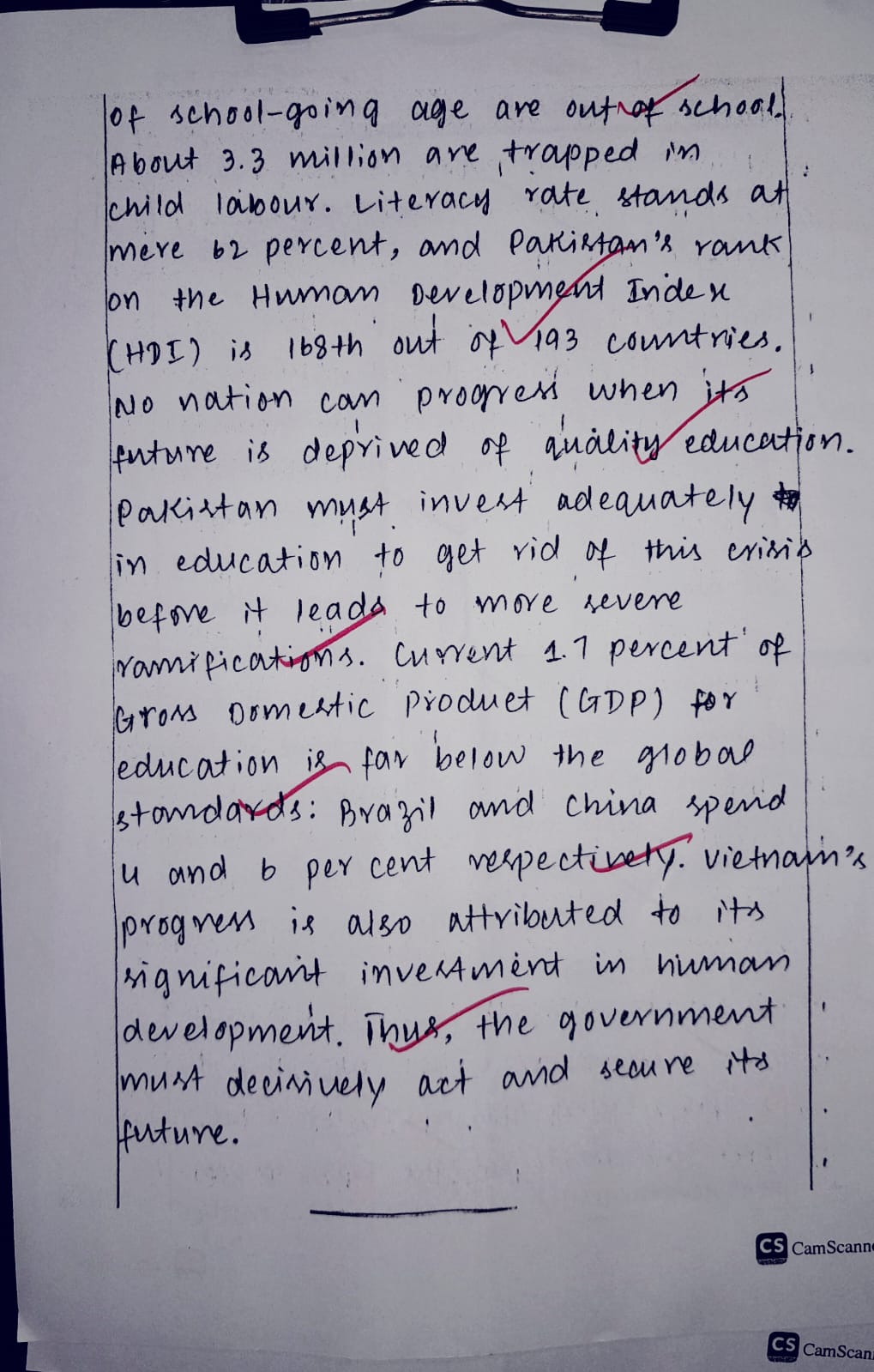 Since its inception, Pakistan has been entangled in an intricate network of multiple crises. Political crisis, economic crisis and judicial crisis often get the limelight, but the one and often neglected is education crisis. It is this crisis that is deeply and silently growing in its scope, hindering the country’s efforts toward political stability and socio-economic progress. The faltering economy and incessant political instability are inherently linked to the provision of type of education. While there are a number of causes that can be attributed to this crisis. Among them, lack of political will and constant wrangling between the parties stand at the forefront. Besides, corruption, poverty, inadequate funding and worn-out infrastructure are also playing their part. More recently, resurging terrorism is also coercing parents not to send their children to schools. Today, as per the government’s statistics, 22.3 million of school-going age are out of school. About 3.3 million are trapped in child labor. Literacy rate stands at mere 62 percent, and Pakistan’s rank on the Human Development Index (HDI) is 168th out of 193 countries. No nation can progress when its future is deprived of quality education. Pakistan must invest adequately in education to get rid of this crisis before it leads to more severe ramifications. Current 1.7 percent of Gross Domestic Product (GDP) for education is far below the global standards. Brazil and China spend 4 and 6 per cent respectively. Vietnam’s progress is also attributed to its significant investment in human development. Thus, the government must decisively act and secure its future.